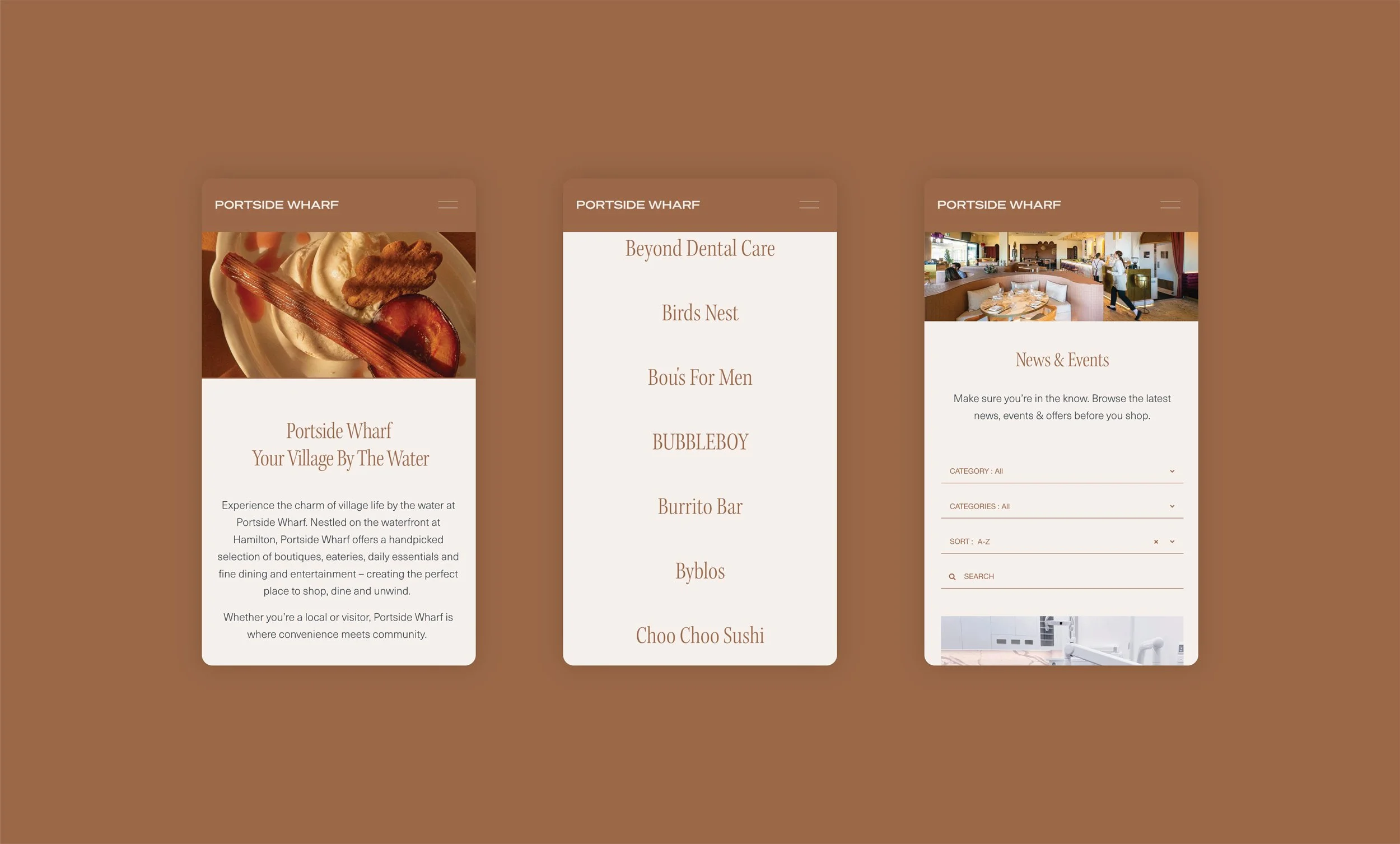 We were approached to create a refreshed online presence that brings the precinct to life while making it easy to explore over 40 stores. The website balances a high-end retail feel with accessibility, letting visitors discover retailers, events and experiences effortlessly. Curated photography, considered layouts and contemporary typography combine to showcase Portside Wharf as a vibrant, welcoming destination.